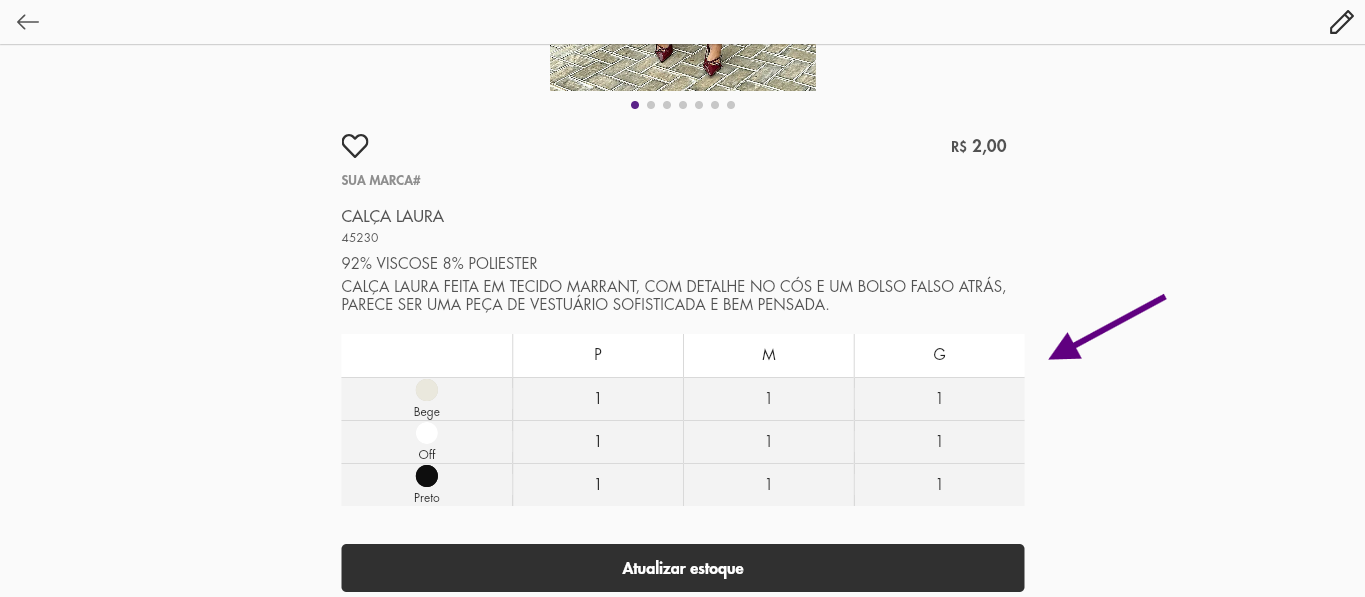 Após ajustar as quantidades, clique em Atualizar estoque.