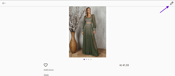 Toque no produto e no ícone do lápis para habilitar a tela de Edição do produto.