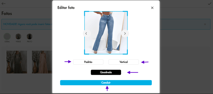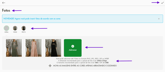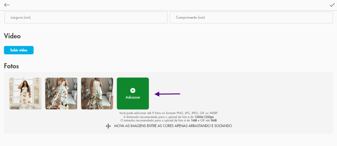 - Arrastando e soltando as fotos diretamente no campo de upload (disponível ao usar pelo computador)