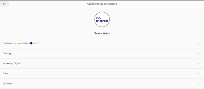 - Acesse Parâmetros e Permissões.