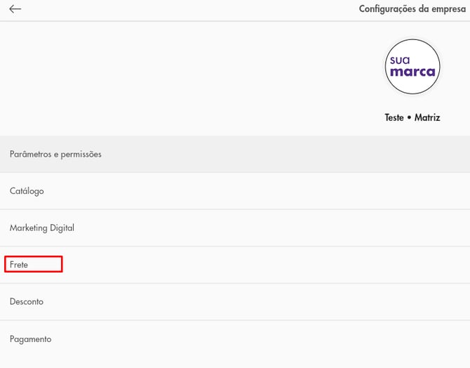 Selecione a forma de frete ativa no seu catálogo: Correios ou Melhor Envio.