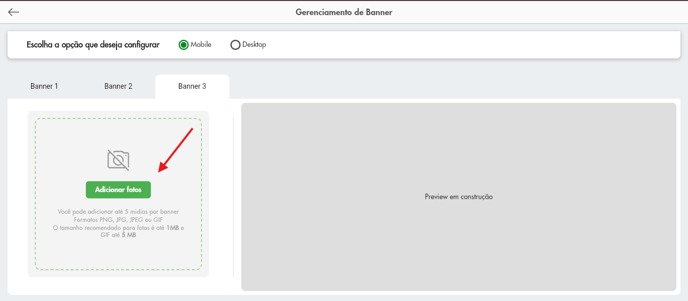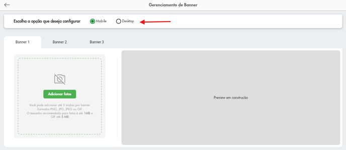 Ao abrir a tela, escolha o tipo de banner que deseja cadastrar: