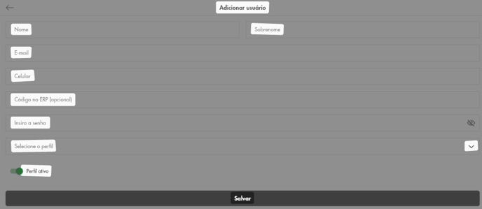 No campo Selecione o perfil, escolha a opção que mais se adequa ao novo usuário.