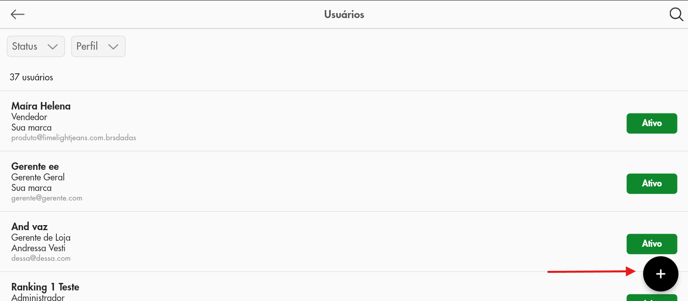 Clique no ícone “+” para criar um novo cadastro.