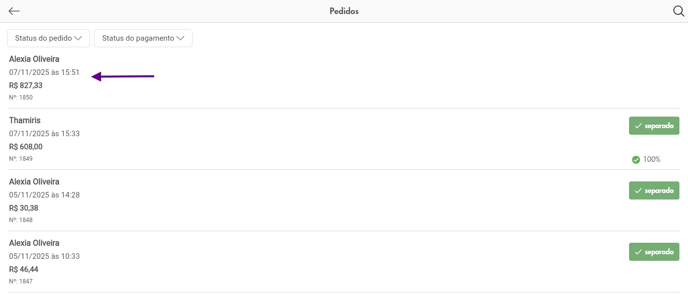 Após concluir o processo, o pedido será atualizado para o status Separado,