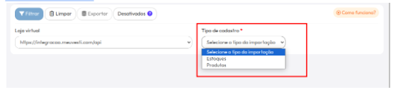 Siga o mesmo procedimento acima, mas em vez de selecionar Produto, coloque Estoque