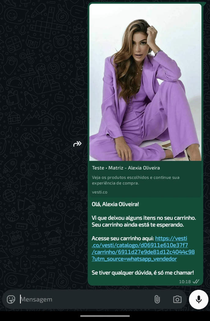 💡 Uma mensagem padrão é enviada automaticamente junto com o compartilhamento!
