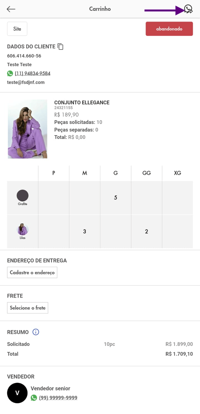 Para entrar em contato com o cliente, clique no ícone do WhatsApp no canto superior direito.