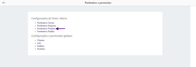 🧾 Parâmetros de Produto