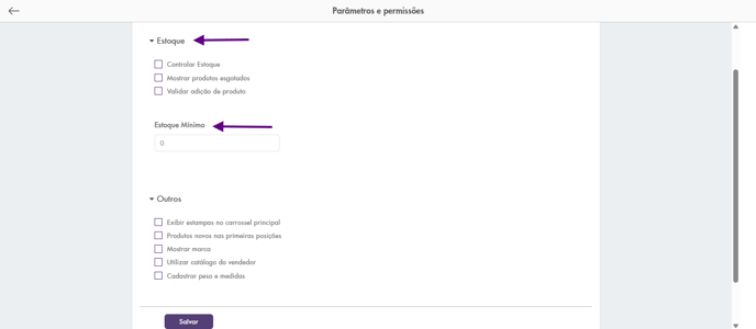 Nesta seção, você pode configurar o controle de estoque dos produtos do catálogo.