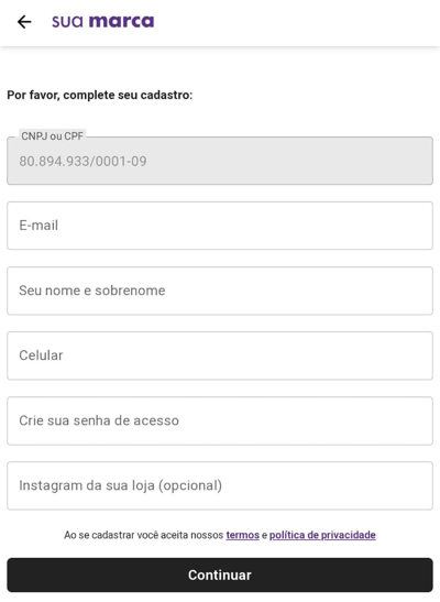 Se o cliente ainda não tiver cadastro, ele deverá preencher os seguintes campos: