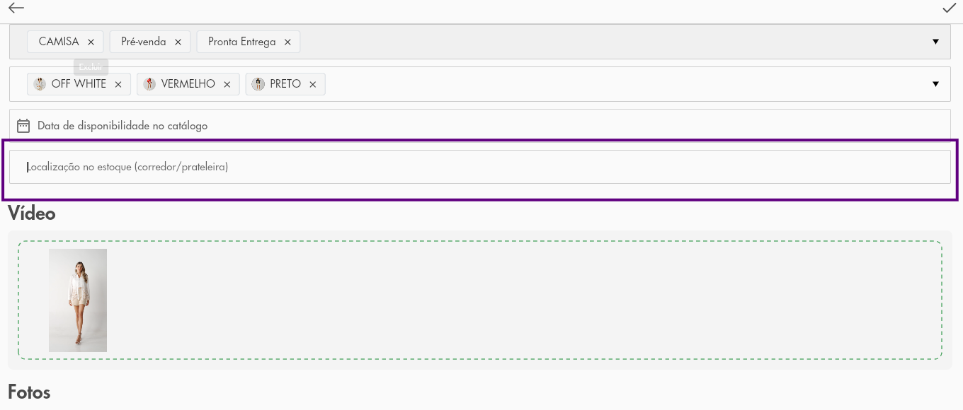 A localização de estoque ajuda você a encontrar rapidamente onde cada item está armazenado no seu estoque físico. Essa informação aparece diretamente na página do produto para facilitar a separação e organização.